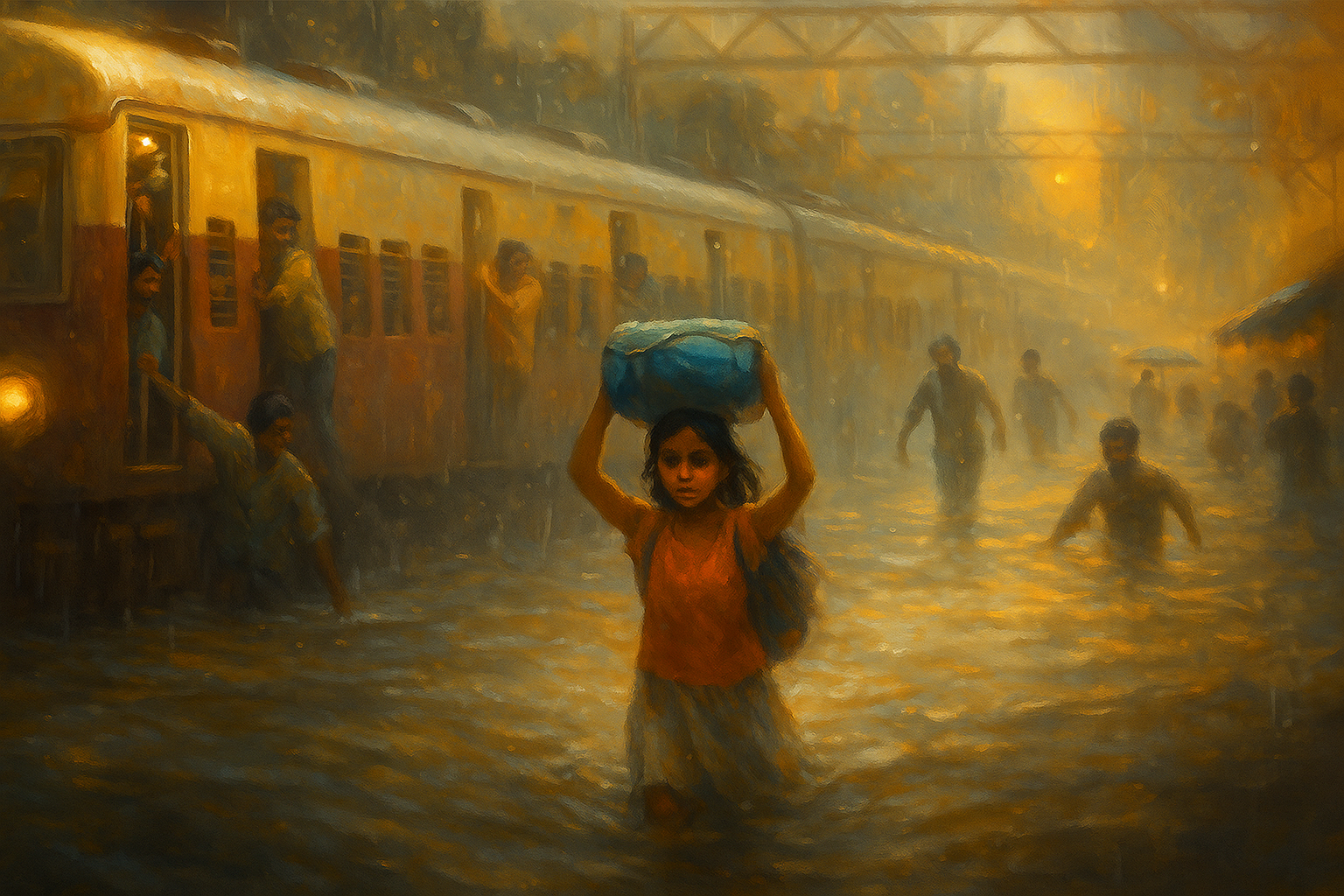 ये सब जानकर लगा कि आज भी देश के कुछ बच्चे शिक्षा से वंचित हैं. आज़ादी के इतने वर्षों बाद भी ये दृश्य देश की असली तस्वीर दिखाता है.ट्रेन ने हॉर्न दिया, थोड़ी दूरी चली, फिर रुक गई. स्टेशन नज़र आ रहा था लेकिन बरसात विकराल हो चुकी थी. मैंने बाहर झाँका हर तरफ पानी ही पानी.