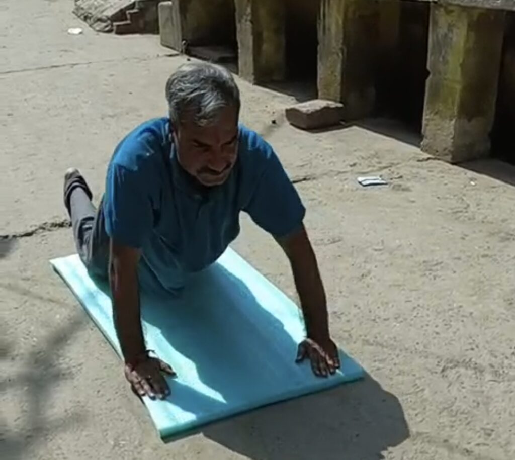 करीब डेढ़ किलोमीटर तक दंडवत कर रास्ते में कंदमूल विक्रेता से कुछ ग्रहण करता हूं और हनुमान मंदिर तक पहुंचकर यात्रा को विश्राम देता हूं। वापसी में पंडित जी के ठिकाने पर स्नान, भोजन और विश्राम करता हूं। शाम को फिर हनुमान मंदिर पहुंचकर 5:00 बजे दंडवत आरंभ करता हूं, जो रात 10:00 बजे तक चलती है।