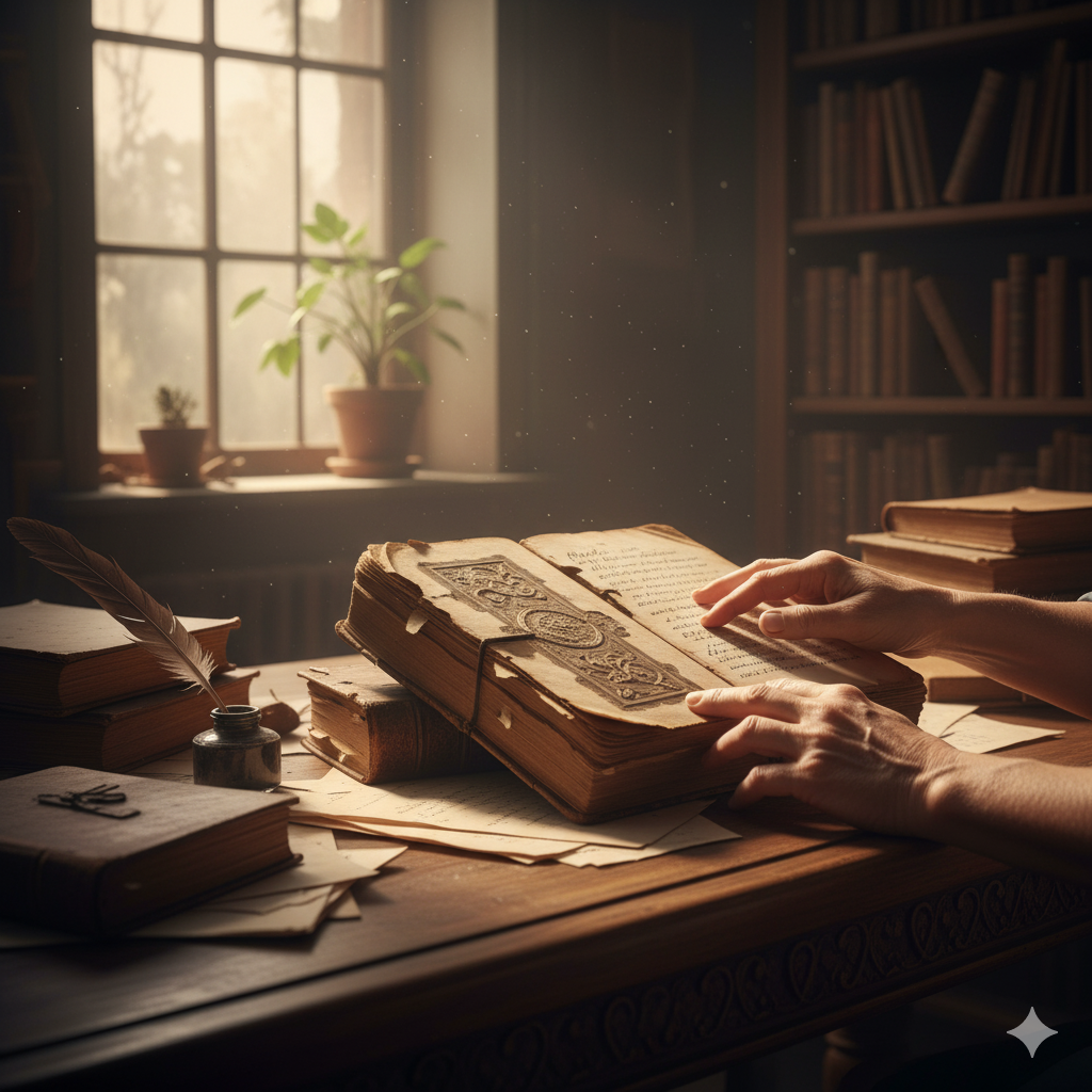 किसी पुरानी, धूल भरी लाइब्रेरी