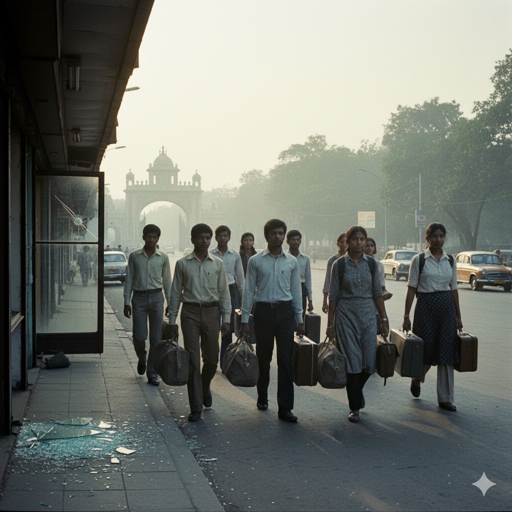 दूसरा अनुभव अप्रत्याशित और कुछ हद तक विचलित करने वाला था। वर्ष 1978 में यात्रा के अगले पड़ाव पर हम जब प्रातः बंगलौर पहुँचे, तो गाड़ी को स्टेशन पर ही रोकना पड़ा। पूरे स्टेशन परिसर में भारी पथराव के निशान थे टूटे हुए शीशे, बिखरा हुआ मलबा और भय का सन्नाटा। जानकारी मिली कि दिल्ली में इंदिरा गांधी जी की गिरफ्तारी के विरोध में कांग्रेस कार्यकर्ताओं द्वारा यह प्रदर्शन किया गया था और पूरे शहर में सार्वजनिक यातायात ठप था।