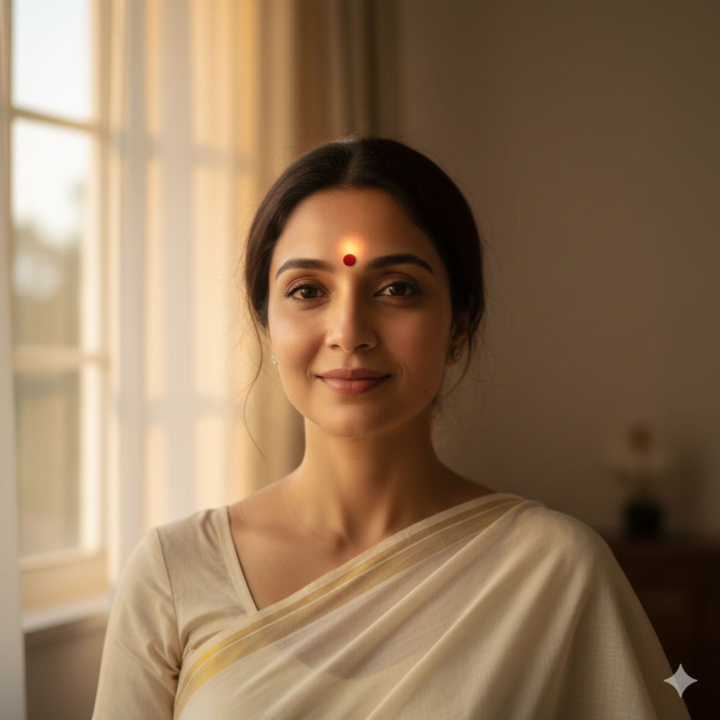 ना मेकअप, ना लाली — बस एक बिंदी,