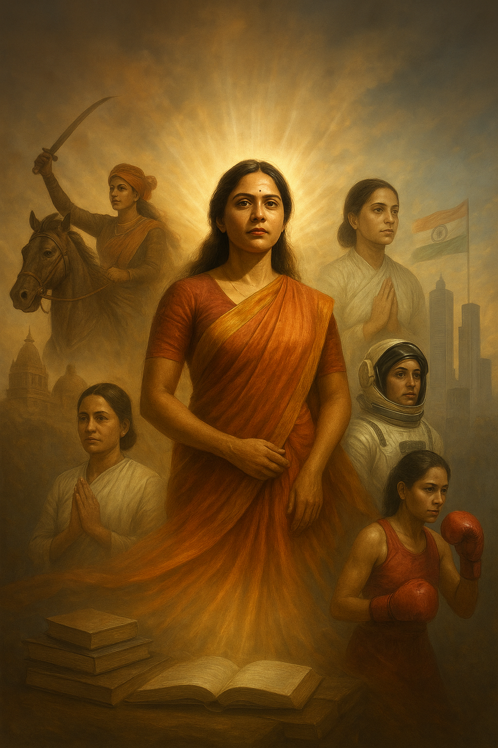 नारी, एक ऐसा शब्द है जो अपनी विविधता और गहराई के कारण अपने आप में एक संसार समेटे हुए है। भारतीय संस्कृति और समाज में नारी का स्थान अत्यंत महत्वपूर्ण और सम्माननीय रहा है। वह केवल परिवार की धुरी नहीं है, बल्कि समाज, संस्कृति और राष्ट्र के निर्माण में भी एक प्रमुख भूमिका निभाती है। भारतीय इतिहास में नारी का योगदान अविस्मरणीय है। प्राचीन काल से ही नारियों ने अपनी योग्यता, शक्ति, और समर्पण से समाज को एक नई दिशा दी है। सीता, सावित्री, गार्गी, अपाला जैसी महान नारियों के उदाहरण हमारे शास्त्रों और पुराणों में मिलते हैं जिन्होंने अपनी बुद्धिमत्ता, साहस और त्याग से समाज में अपना विशेष स्थान बनाया।