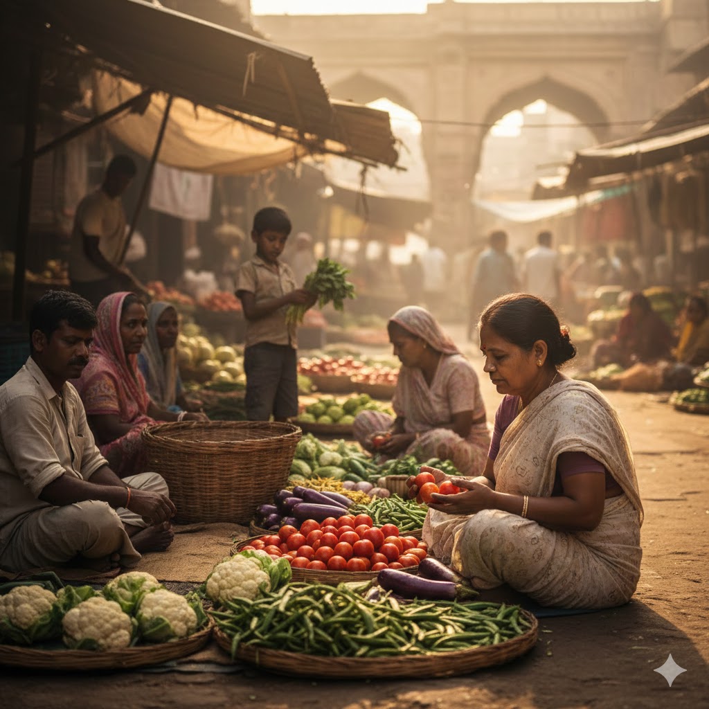 भरे बाज़ार में मैं पसीने से तरबतर हो रही थी, परंतु मुझे सब्ज़ियाँ सब्ज़ी मंडी से ही खरीदने में मज़ा आता था। एक तो सब्ज़ी बेचने वालों से पुराना परिचय, दूसरा हर सब्ज़ी को सहला कर, टटोलकर लेना, इसमें सभी औरतें पारंगत होती हैं। जैसे भिंडी की नोक दबाकर देखना टूट गई तो कच्ची, वरना पक्की। टमाटरों का कड़ापन, रंग और आकार के साथ मेल बैठाना। पत्ता-गोभी, बैंगन आदि तो फटाफट रंग देखकर ले लिए जाते हैं, पर फूलगोभी तो अंदर तक ताँक-झाँक करके ही ली जाती है। बेचारी सब्ज़ियों को भी कितनी परीक्षाओं के दौर से गुजरना पड़ता है।