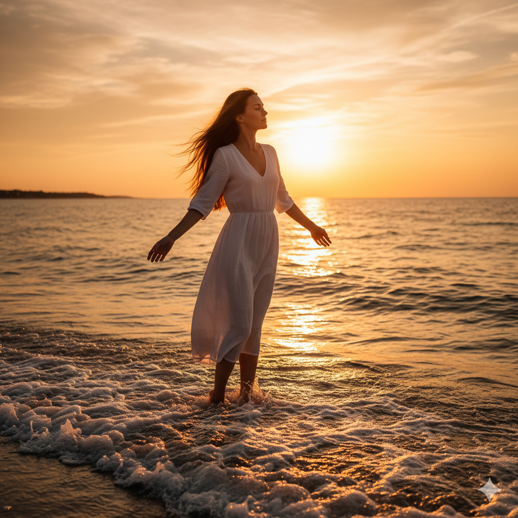 लहरों को बाहों में समेटे हुए मैं,