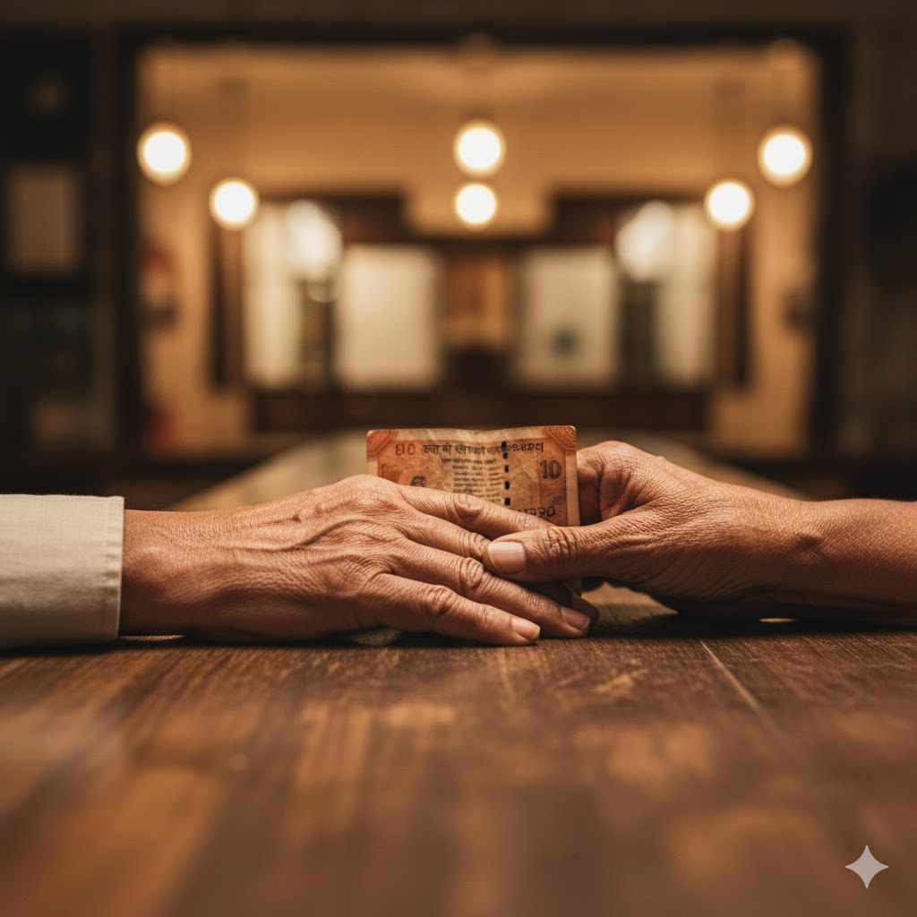 धनी दोस्त बोला-“अरे पगले! मैं 10 रुपये लेने नहीं आया हूँ। बस तू बिना बताये चला गया था… इसी का दुःख था।”