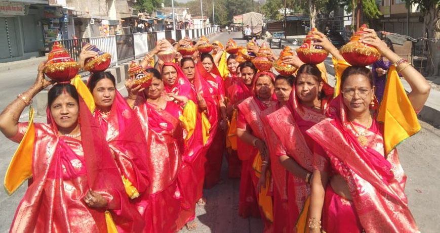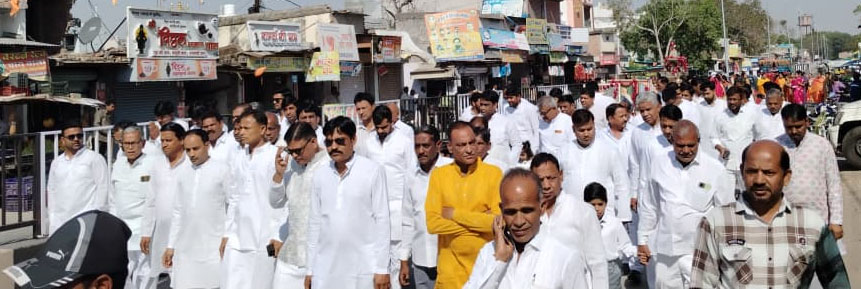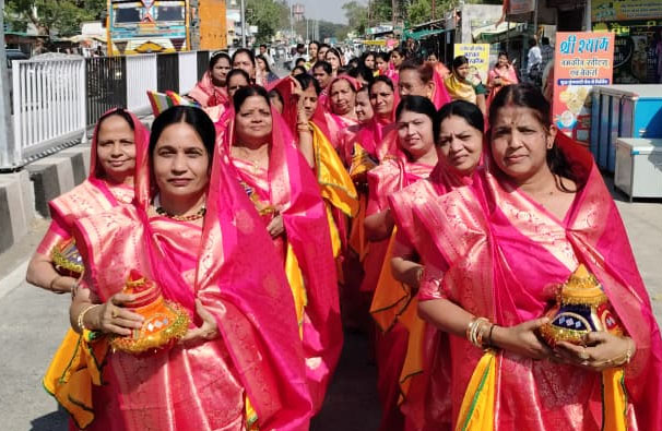 सफेद-केसरिया वेशभूषा में श्रद्धालुओं ने निकाला भव्य चल समारोह