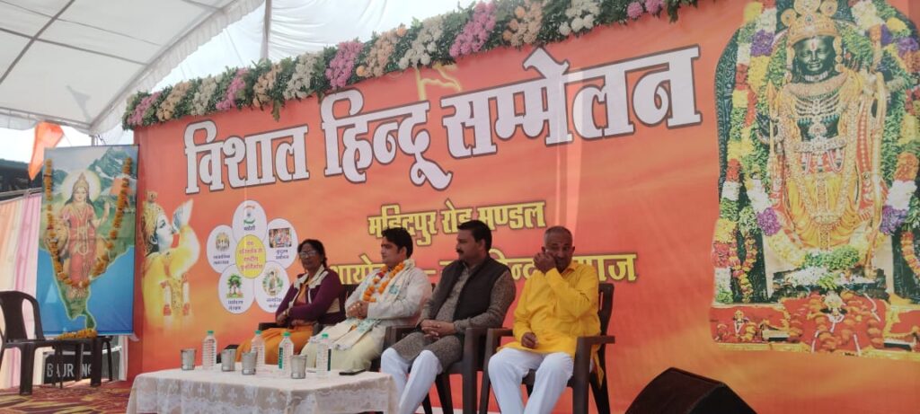 कार्यक्रम की शुरुआत अतिथियों द्वारा भारत माता की तस्वीर के सामने दीप प्रज्ज्वलन से हुई। इसके बाद प्रमुख प्रवक्ता संत भाईजी प्रदीप संजा ने “फैशन” को धर्म की चुनौतियों में से एक बताते हुए कहा कि धर्म की रक्षा के लिए अपने शरीर को ढंकना आवश्यक है। उन्होंने कहा कि फैशन के नाम पर लोग कपड़े उतार रहे हैं इसी के साथ उन्होंने आर्थिक लेन-देन में भी “हिंदू भाई” को प्राथमिकता देने की बात कही, ताकि आर्थिक स्तर पर भी समुदाय की एकता मजबूत हो सके।