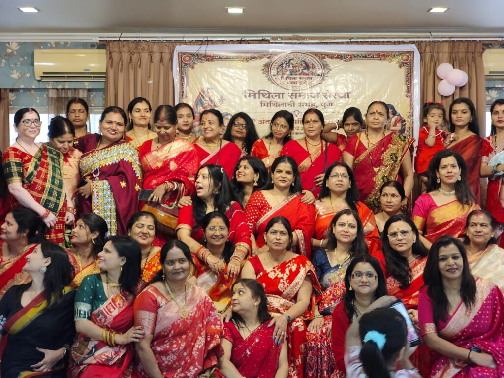 वहीं जय-जय भैरवी की सुंदर प्रस्तुति रीना दास, भावना कुमार और अलका जी द्वारा दी गई, जिसे दर्शकों ने खूब सराहा.यह कार्यक्रम मिथिला समाज संस्था पुणे की अध्यक्षा श्रीमती संगीता चौधरी के नेतृत्व में आयोजित किया गया, जबकि कार्यक्रम की संयोजिका श्रीमती अपर्णा झा रहीं. कार्यक्रम को सफल बनाने में नूतन ठाकुर, ममता ठाकुर, आराधना मिश्रा, निधि झा, मोनालिसा झा, काजल चौधरी, नीतू मिश्रा, रूबी झा, तुलसी झा, प्रीति झा, सोनी चौधरी, सविता चौधरी और स्निग्धा झा का विशेष सहयोग रहा.