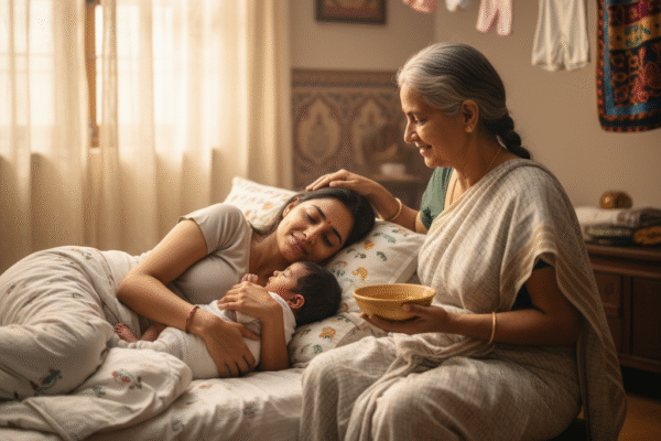 प्रसव के बाद थकी-हारी गीतू मायके से किसी के आने की उम्मीद लगाए चिंतित है। आर्थिक तंगी और दूरी के कारण उसे लगता है कि कोई नहीं आएगा। मन में यह भी कसक है कि काश बेटी होती तो पिता का बोझ हल्का होता। तभी सासू माँ फोन पर सबको खुशी से बेटे के जन्म की खबर देती हैं और मालिशवाली को बुलाकर कहती हैं — सवा महीने बाद बड़ा फंक्शन होगा। गीतू अपनी चिंता बताती है कि मायके से सोना-चांदी आदि कैसे आएंगे, तो सास lovingly कहती हैं — “सोना-चांदी तो दादा-दादी की ओर से आएगा, तुमने हमें पोते के रूप में खरा सोना दिया है।” यह सुनकर गीतू भावुक होकर अपनी सास से लिपट जाती है अपनी दूसरी माँ की तरह।