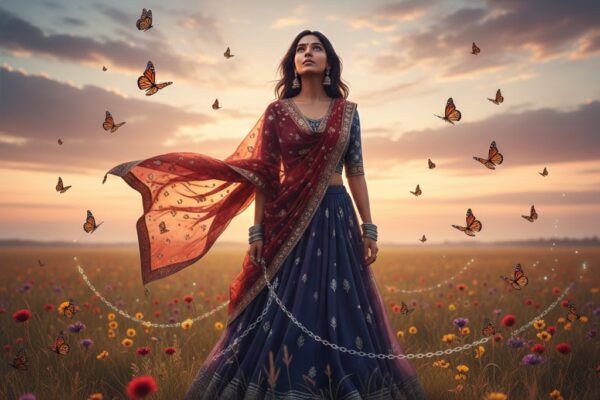 प्रेम में डूबी स्त्री कभी नादान-सी लगती है, कभी इतनी कोमल कि जैसे स्पर्श से बिखर जाए। उसके भीतर सपनों की हलचल है. उमड़ती-घुमड़ती, तितर-बितर होती तमन्नाएँ। वह तितली-सी है, जिसे उड़ना तो है, आसमान को छूना भी है, पर उसके चारों ओर फैली दुनिया उसे फूलों के दायरे से बाहर जाने ही नहीं देती। आसमान ऊँचा है, अपने ही गर्व में अडिग; और ज़मीन पर खड़ी वह स्त्री अपने पंख फैलाने को तैयार होते हुए भी उड़ नहीं पाती।